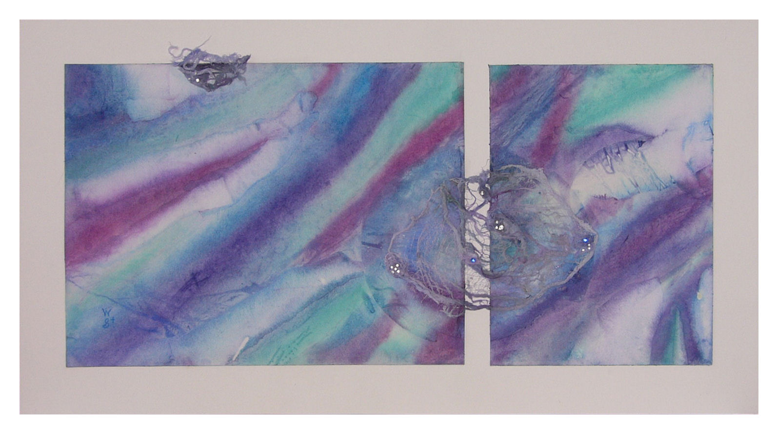 16 x 30 framed - Fiber Overlay with Swarovski Crystals